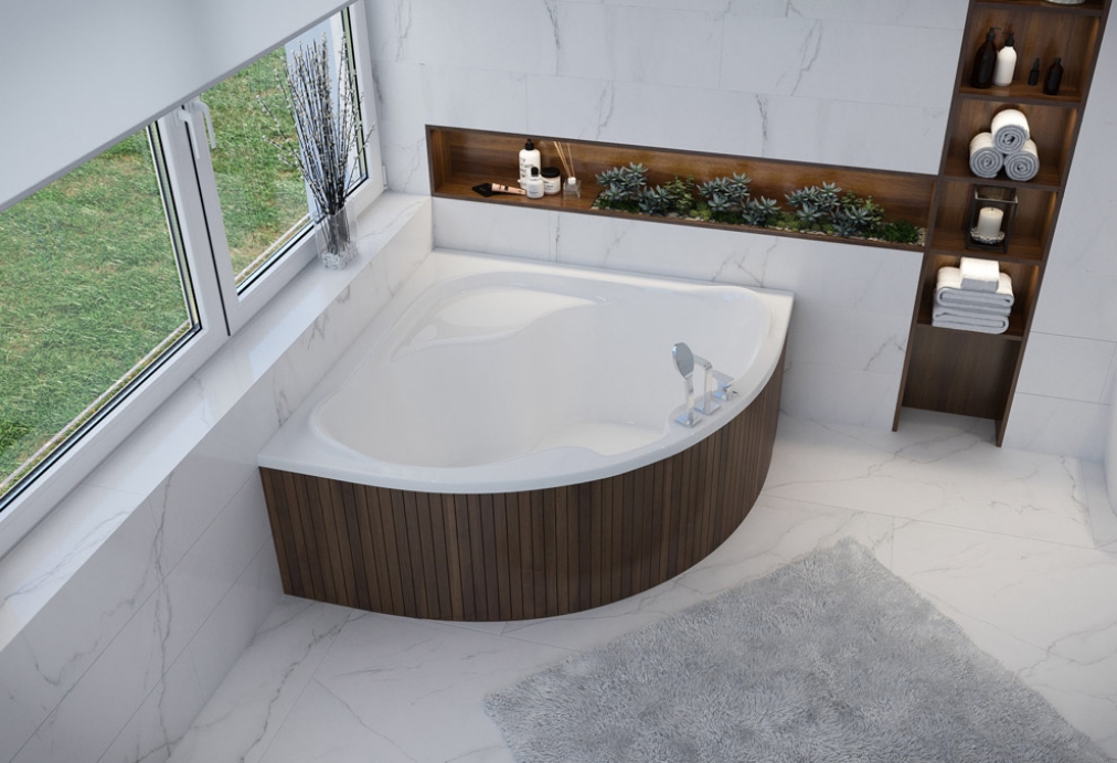 Aszimmetrikus sarokkádat: Előnye, hogy kialakításának köszönhetően helytakarékos. Kisebb és nagyobb fürdőszobákba is tökéletes választás lehet. Többségükhöz fejtámla is választható. Nagy előnyük, hogy egy kádparavánnal felszerelve komfortos zuhanykabinként is használhatjuk.